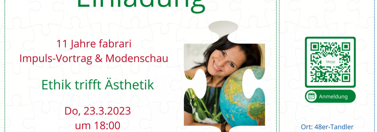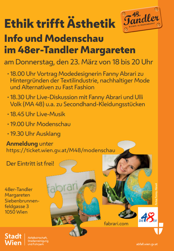 Ich wurde eingeladen für den MA48-Tandler einen Impuls-Vortrag zu meiner Philosophie für nachhaltige Mode zu halten. Im Anschluss gibt es eine Modenschau mit einem Schwerpunkt zu meinem Herzensthema “Woman-Life-Freedom”- Freiheit für Iran.